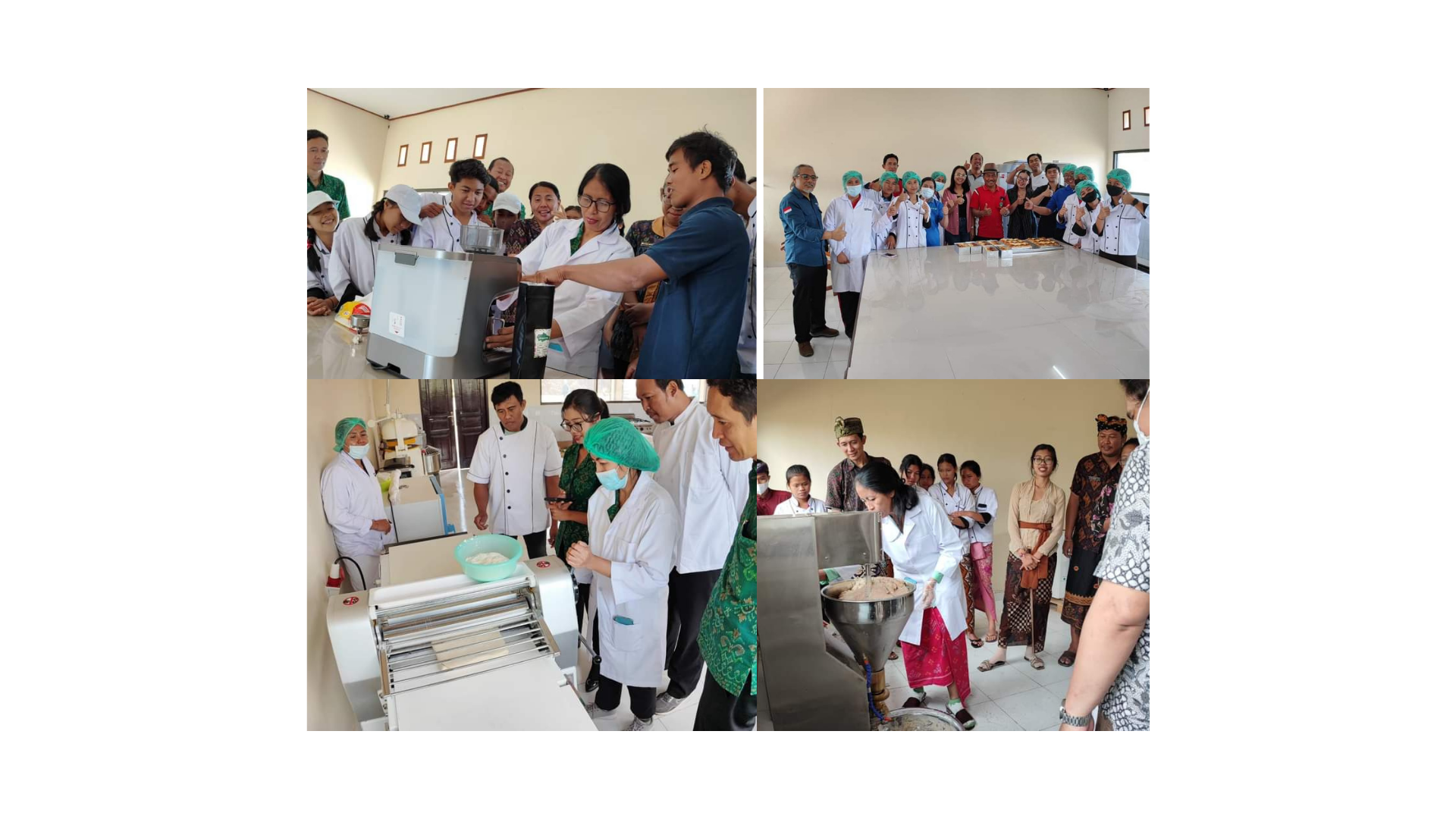 Di hari Jumat, 8 September 2023 SMK Negeri 1 Petang kedatangan narasumber dari PT. Natural Pangan Indonesia (Nature cake). Kami diajarkan proses pembuatan Roti Sobek menggunakan Mixer dan Oven. Pada hari terakhir, Selasa, 12 September kami kedatangan narasumber dari CV. Pelangi Rex’s. Para guru dan beberapa perwakilan siswa diajarkan dalam pembuatan roti Crossan menggunakan alat Dough Sheeter, Mixer, dan Oven . Kami juga diajarkan cara membentuk beberapa jenis Crossan. Kegiatan workshop ini diikuti dengan penuh semangat oleh Bapak/Ibu Guru dan para siswa. Kepala SMK Negeri 1 petang Bapak I Wayan Yudana, S.Pd., M.Pd. berharap melalui kegiatan ini kegiatan TEFA SMK Negeri 1 Petang terutama di Program Keahlian APHP berjalan sesuai dengan yang diharapkan.